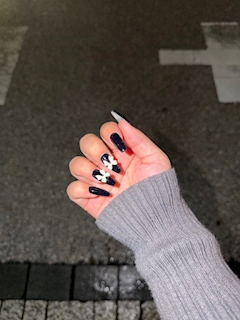 こんばんは〜!すいです♡ 毎月楽しみにしてるネイル♡ ザ・シンプル‼️ 黒に見えるけど実は紺色💙かわいい🎀♡ 冬のデザインは可愛いのが多いからいつも迷う🤔 来月は何にしようかな〜〜〜(早い笑) また来週からお待ちしてまーす!🎶